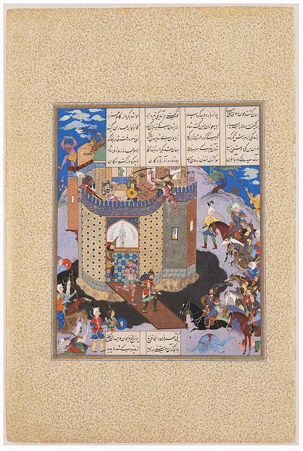 Miniature fra et eksemplar af Firdawsis Shahnama. ”Kay Khusraw indtager det dæmonbesatte Bahman Slot”
