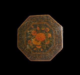 Kalligrafens navn fremgår ligeledes: Abdallah ibn Muhammad Hussain ibn Ali al-Mazandarani. Lakbindet, der er dekoreret med blomster og blade samt forskellige friser, er fra det 19. århundrede og typisk for qajar-perioden.