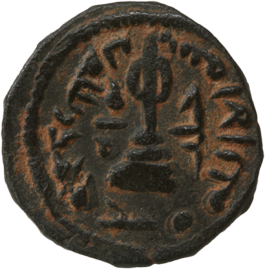 Dette understreges af ordene omkring skikkelsen ”på vegne af Guds Tjener, ‘Abd al-Malik, De Troendes Hersker”. På møntens bagside ses en erstatning for et kors på trin. I stedet for det kors, som ses på byzantinske mønter, er en pæl stående på tre trin med en cirkel nær toppen.