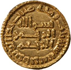 “denne dinar blev præget i Ifriqiya i året tre og ethundrede”.